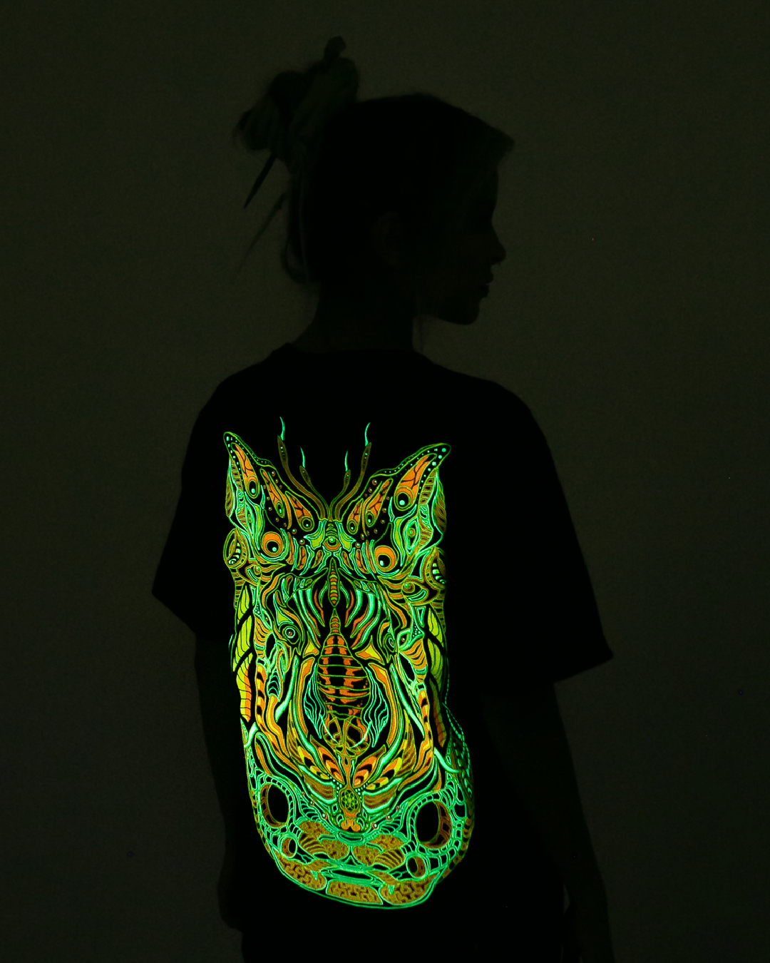 Estampada cirurgicamente, a arte reage a diversos tipos de iluminação, como UV, RGB e até ao Escuro!